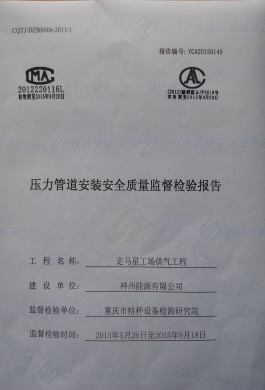 2015年9月18日,神州能源有限公司历时114天顺利取得走马星工厂供气工程压力管道安装安全质量监督检验报告。这也是走马片区首次取得的压力管道监检合格报告。